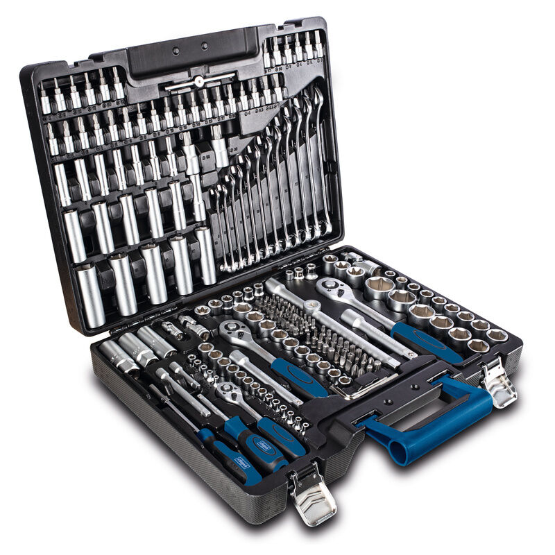 Dettagli: Valigetta compatta con preziosi utensili per l'avvitamento, tra cui 3 impugnature a cricchetto e relative prolunghe, varie chiavi, chiavi a brugola, cacciaviti con portabit, punte e bussole. Con questa valigetta TB217 di scheppach, ogni appassionato di bricolage è ben equipaggiato per tutti i lavori di avvitamento. Gli utensili sono realizzati in acciaio al cromo vanadio e acciaio per utensili e sono quindi particolarmente resistenti e durevoli. Valigetta robusta e compatta Tutti gli utensili sono disposti in modo ordinato e a portata di mano. Questi utensili migliorano la trasmissione della forza e facilitano lo svitamento di dadi e bulloni. Nessun serraggio eccessivo Le diverse dimensioni degli utensili e degli accessori consentono di raggiungere i punti più difficili da raggiungere. Dotazione: 217 utensili di alta qualità in acciaio al cromo vanadio e acciaio per utensili: 39 bussole 18 chiavi a bussola 14 prese elettriche 3 chiavi per candele 3 giunti universali 1