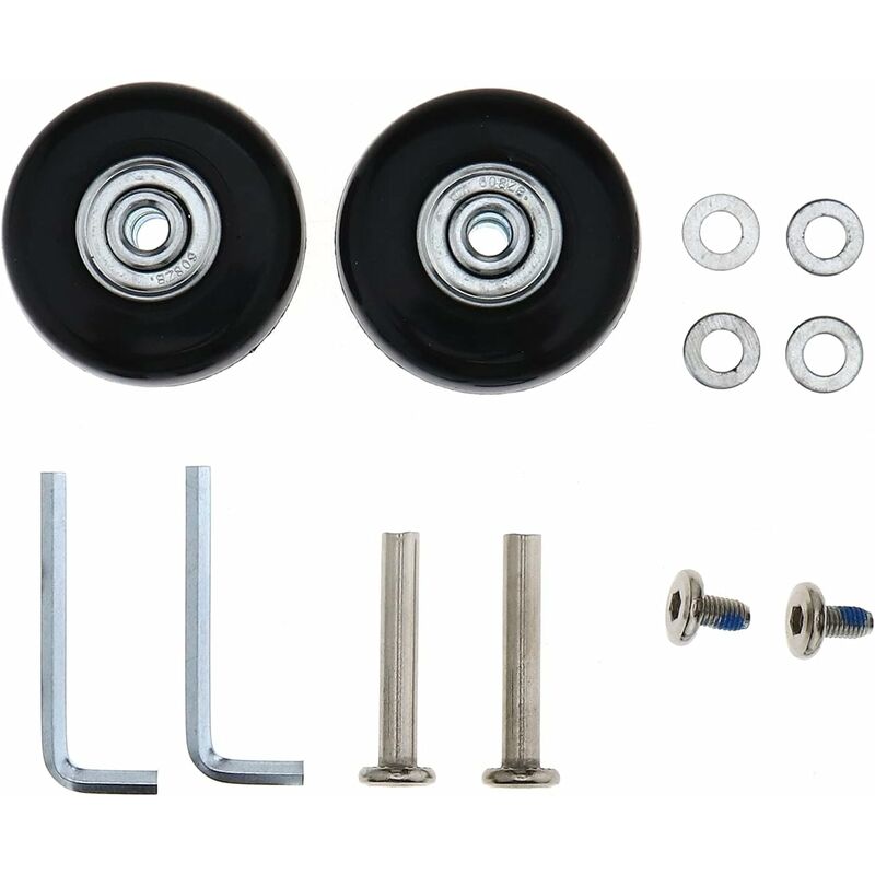 Assi: 35 mm -Queste ruote sono realizzate in gomma, più stabili, più resistenti all'usura, silenziose e rotanti, flessibili e senza sforzo. -Un modo molto economico per prolungare la vita del tuo bagaglio quando un la ruota è danneggiata. Soluzione perfetta per non dover acquistare nuovi bagagli -Il pacchetto include 2 ruote, 2 assi, 2 viti, 2 chiavi, 4 rondelle -Si prega di confermare che la distanza tra il foro della vite di montaggio della ruota e il la staffa inferiore delle ruote orientabili è di almeno 28 mm prima dell'acquisto. br/>Larghezza ruota: 18 mm Lunghezza asse: 6 mm Capacità massima di carico: 50 kg (2 ruote) Colore: nero Materiale: gomma e acciaio