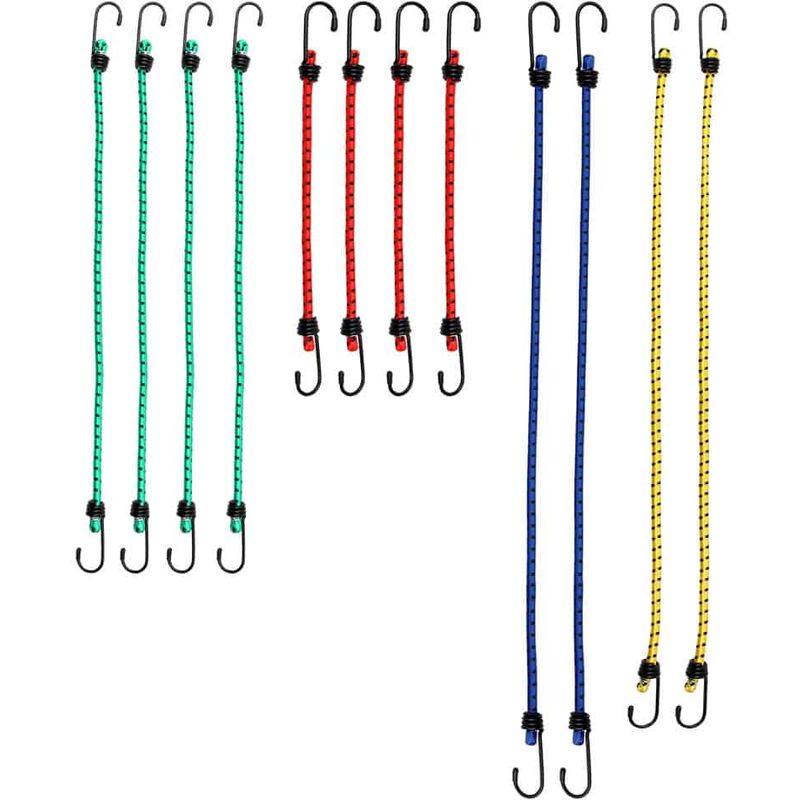 Questa cinghia elastica di alta qualità è versatile e indispensabile nella vita di tutti i giorni. Vengono utilizzati per la copertura con teloni, durante la gita in barca o come accessorio per la bicicletta. Sono ideali anche per attività all'aperto come il campeggio o per fissare i mobili da giardino in caso di vento forte o per appendere striscioni pubblicitari. Il set contiene 4 lunghezze diverse in modo da avere sempre la lunghezza giusta per la rispettiva situazione. Le cinghie elastiche sono costituite da materiale durevole e resistente alle intemperie. I resistenti ganci in metallo sono dotati di una protezione in gomma per prevenire lesioni e danni. Vantaggi del prodotto: * Set da 12 pezzi * 4 lunghezze diverse * versatile * durevole e resistente agli agenti atmosferici * ganci in metallo durevoli * protezione in gomma sui ganci Il set contiene: * 2x 95 cm * 2x 65 cm * 4x 50 cm * 4x 30 cm Dati tecnici: * diametro della corda: 8 mm * gancio: 3,2 mm * Colori: blu, giallo