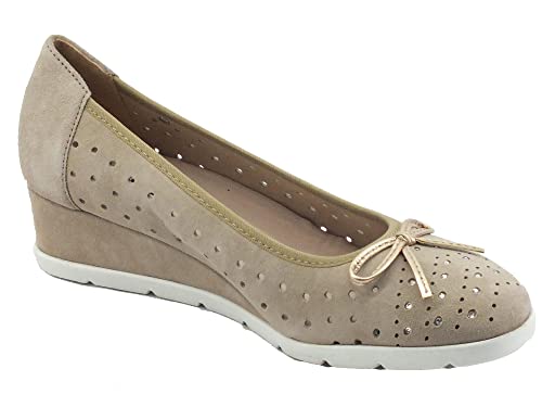 Valleverde 36605 Suede Taupe Ballerine con Zeppa per Donna in Nabuk Traforato (Taglia 41)