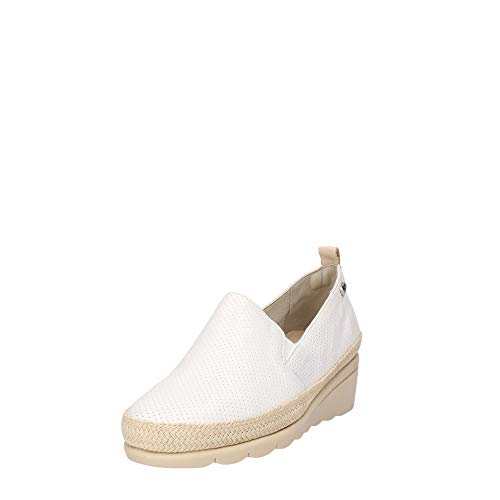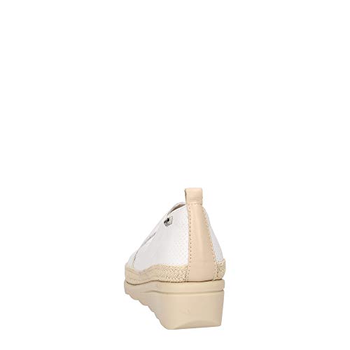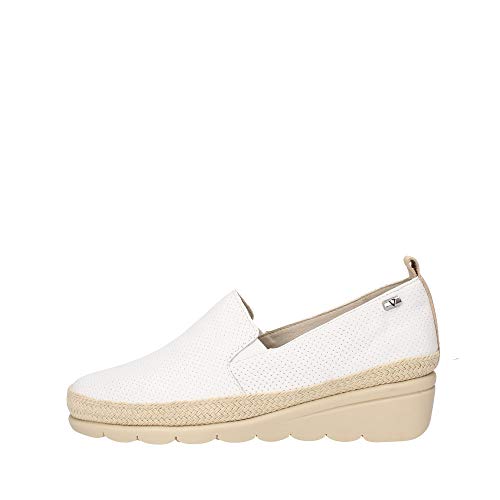 Valleverde V66185 Mocassini Estivi Donna Vera Pelle Microforata Bianco Zeppa 4 Cm, 36