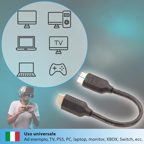Valonic cavo hdmi corto, 20 cm - HDR, ARC, High Speed 4k Ultra HD - per TV, PC, PS5, Monitor - maschio maschio, nero, 0,2m