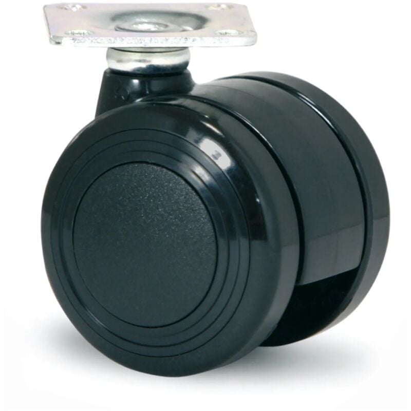 Ruota per arredamento,supporto e ruote con nucleo in poliammide nero e battistrada in poliuretano,piastra girevole mm.38x38. Ruota d.50 mm. Portata kg.45 (dinamica). Altezza mm.61.