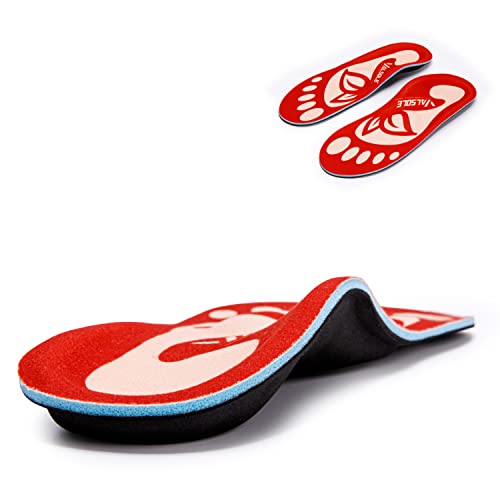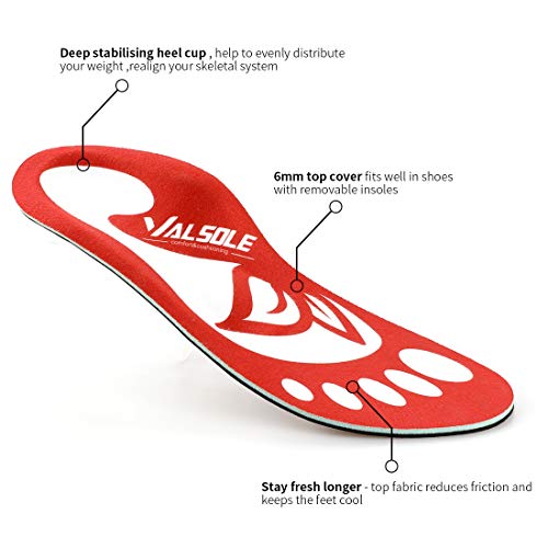 VALSOLE Solette Confort Ortopediche,su tutta la Lunghezza Cuscinetto per Supporto arco Plantare Soletta per la Fascite Plantare, Adatte a Uomini e Donne (46-47 EU (295mm), red-v7a)