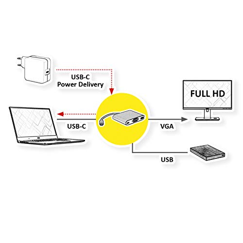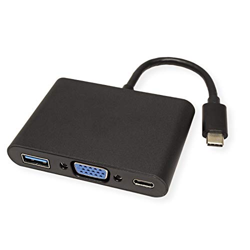Value 12993201 USB3.1 Display Adapter, Tipo C a VGA + USB 3.0 + Tipo C (Power Delivery) Nero
