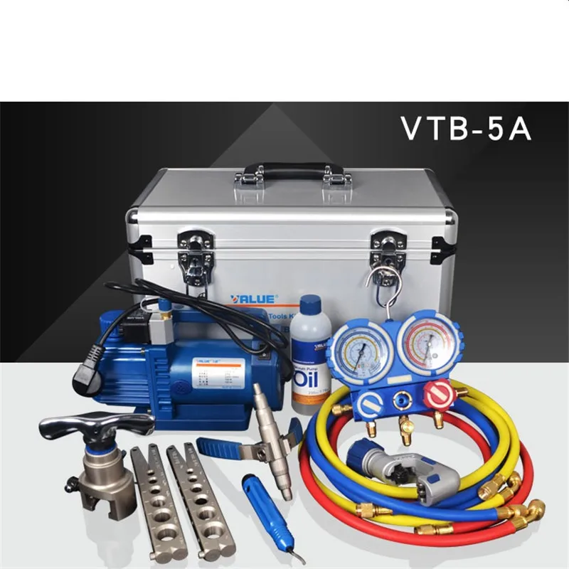 VALUE 7in1 VTB-5A Refrigeration Repair Tool Set With Aluminum alloy box Refrigeration Toolbox Set Flare Device Vacuum Pump