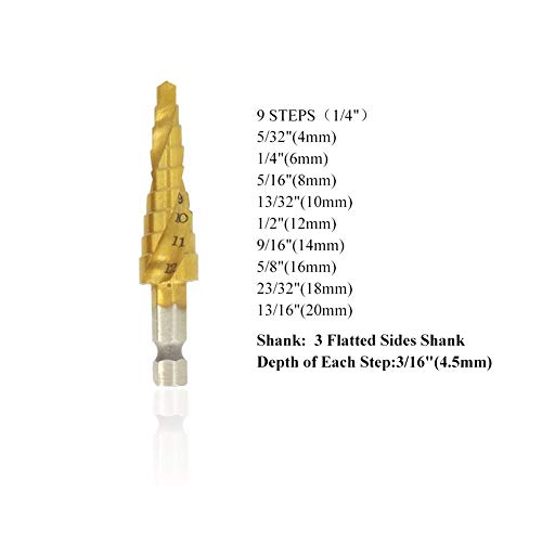 Dimensioni: 3 pz HSS dimensioni Step punte coniche, 4-12mm, 4-20mm e 4-32 mm.