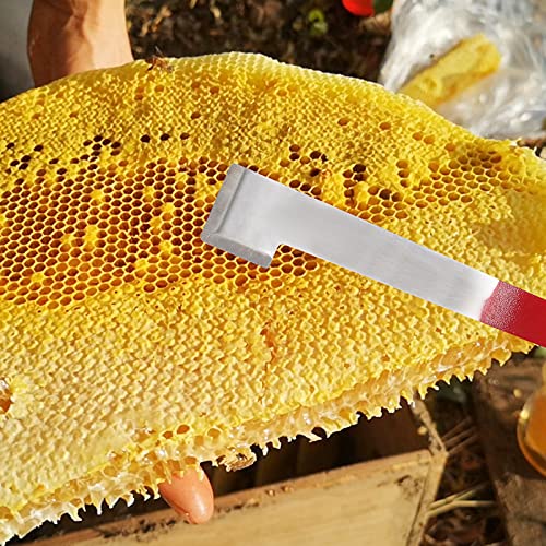 Strumento Multifunzione: Il gancio J dello strumento dell'alveare può essere applicato per sollevare il primo telaio e il bordo affilato viene utilizzato per raschiare la cera d'api, sono strumenti necessari per gli apicoltori. Assicurati di aver indossato i guanti durante l'utilizzo di questo strumento per alveare e fai attenzione ai bordi affilati delle alette.