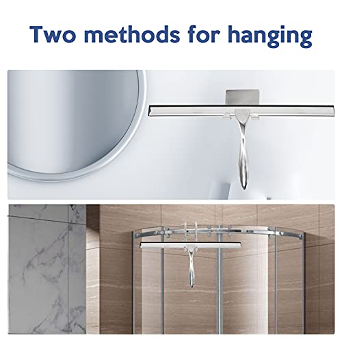 ValueHall Tergivetro per Doccia in Acciaio Inossidabile Lavavetri Spazzola Bagno con Gancio di aspirazione Spatola Doccia Senza Perforazione Lavavetri per Cabina Doccia V1C07