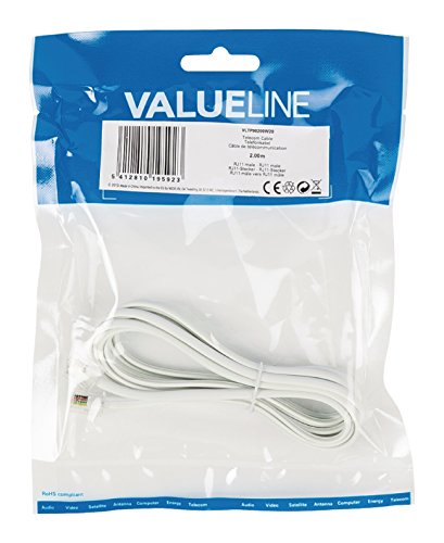 Valueline RJ11, maschio/maschio per cavi telecomunicazioni, colore: bianco, 2 m