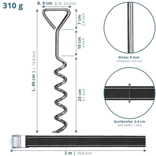 ✅ USO VERSATILE: Il set di ancoraggi è ideale per l'uso all'aperto, ad esempio per proteggere il vostro trampolino dalle tempeste. Il picchetto può essere utilizzato anche per fissare altalene, vele parasole, tende o serre, oltre che come supporto per i cani (fissaggio al collare).