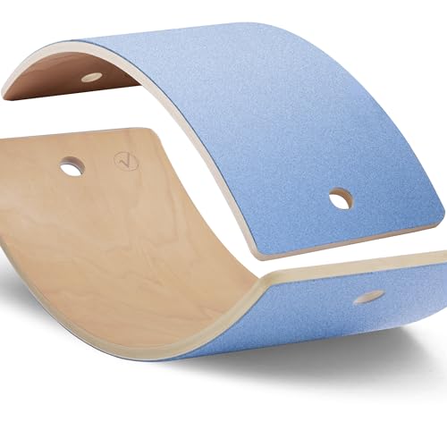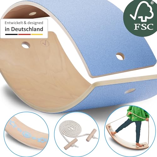Valuents Balance Board in legno per bambini - blu - 82 x 30 cm - Balance Board - Montessori altalena con fondo in feltro + Plus: corda ausiliaria e adesivo antiscivolo