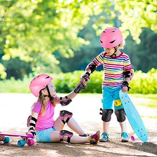 ValueTalks Set di Casco Protezione Bambini con Casco Regolabile Ginocchiere Gomitiere e Polsiere per Skate Bicicletta Pattinaggio Monopattino e Altri Sport Estermi(6-16 Anni)