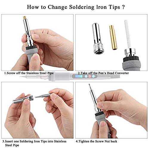 Facile da usare: Plug and Play, facile da accendere e impostare la temperatura. Regolabile da 180 °C a 480 °C, ogni pressa aumenta o diminuisce la temperatura di 5 °C. Dopo la regolazione la temperatura viene memorizzata. Dopo aver raggiunto la temperatura impostata, la temperatura sullo schermo LCD smette di lampeggiare. In questo momento, la penna ha una temperatura costante.