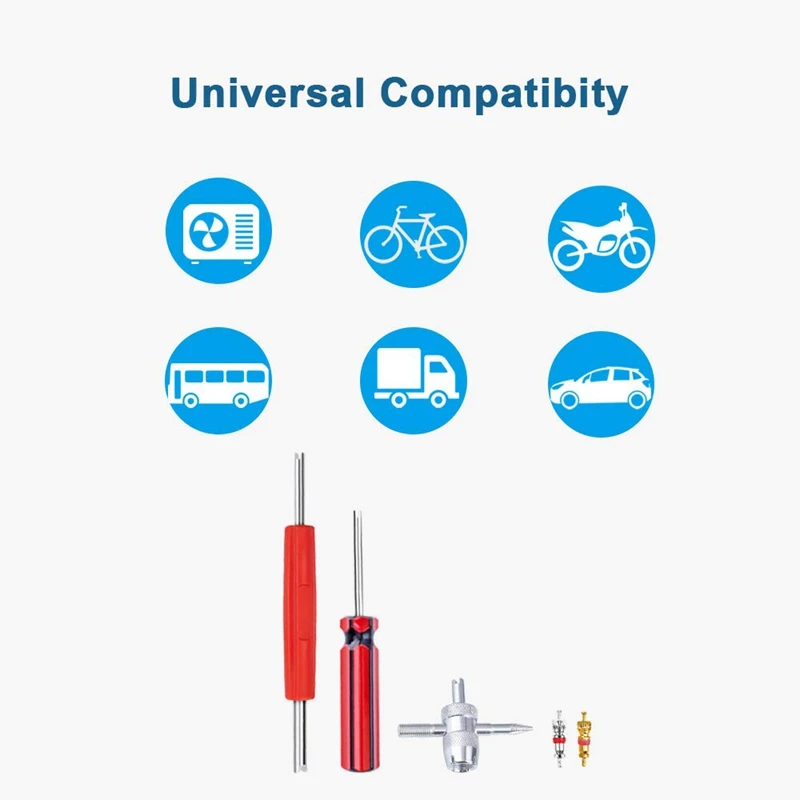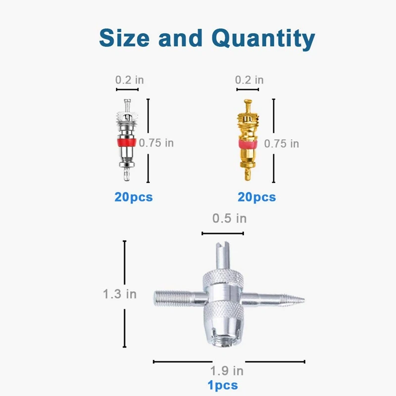 Valve Core Tool Set 20Pcs Valve Cores, 4-Way Valve Tool, Dual Single Head Valve Core Remover, Tire Repair Tool