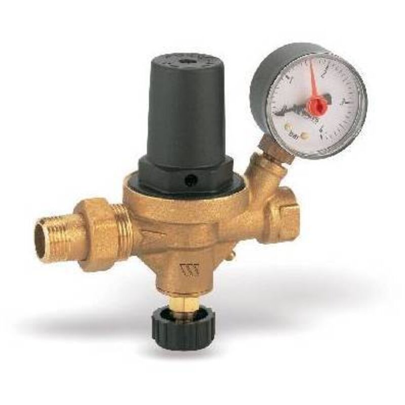 Valvola automatica di riempimento completa di valvola di ritegno, intercettazione manuale, filtro inox, vite di spurgo e manometro con attacco radiale e quadrante 50 mm, attacco radiale 0-4 bar. Corpo in ottone CW617N. Calotta in resina antiurto. Attacco manometro 1/4 F. Pressione max: a monte 10 bar, a valle 0,3-4 bar.(DianFlex)Misura: 1/2 MF
