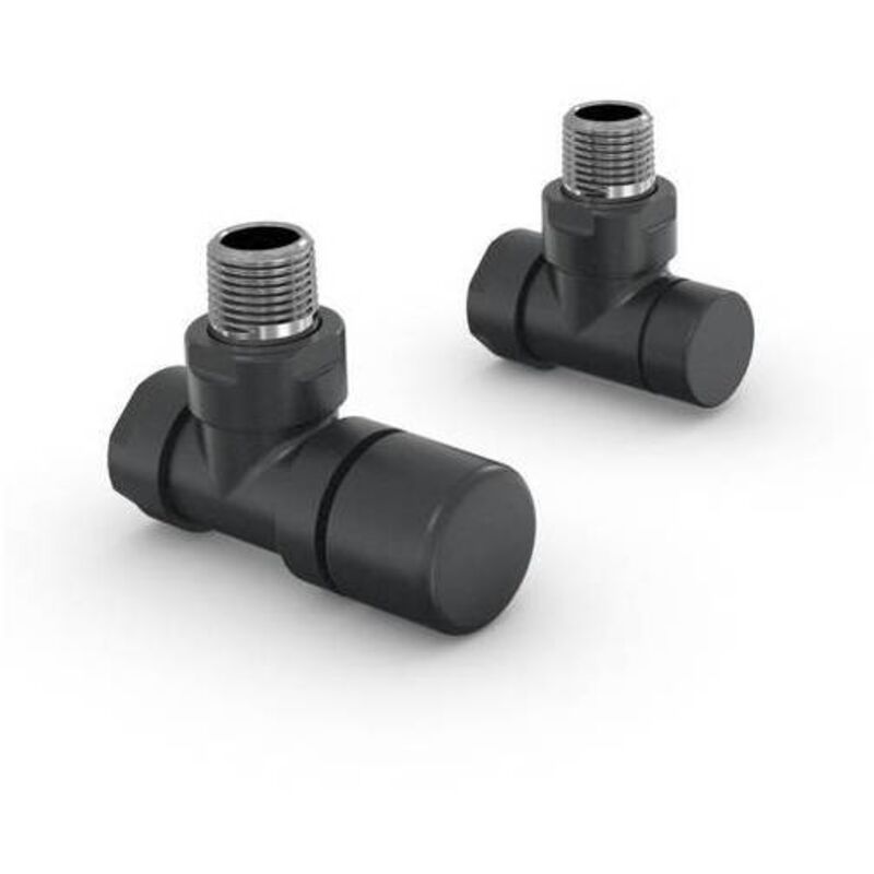 Valvola e detentore a squadra, Diam. 1/2, volantino manuale, inserto termostatico M30x1,5 mm con pre-setting 1-7, inclusi 2 dadi 3/4 Eurocono D. 16,8 mm. Senza raccordi.(DianFlex)Misura: 1/2 Nero