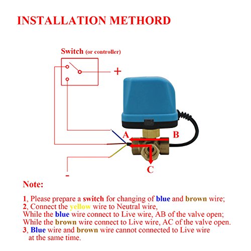Nota: se si collegano i fili "-" e "+" con il metodo opposto, non è possibile chiudere completamente la valvola. Devi trovare qual è il fili "-" e qual è il fili "+", quindi collega il fili giallo a "-" e collega il fili blu o marrone a "+". Il fili blu e marrone non può essere collegato contemporaneamente a "+".