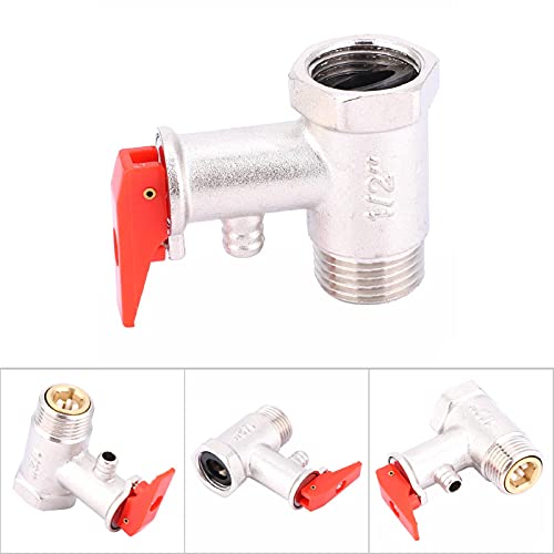 Valvola di Rilascio della Pressione per Scaldabagno 1Pc Valvola di Sicurezza Riscaldatore di Acqua Valvola di Sicurezza in Ottone Nichelato 0.9Mpa G1/2In