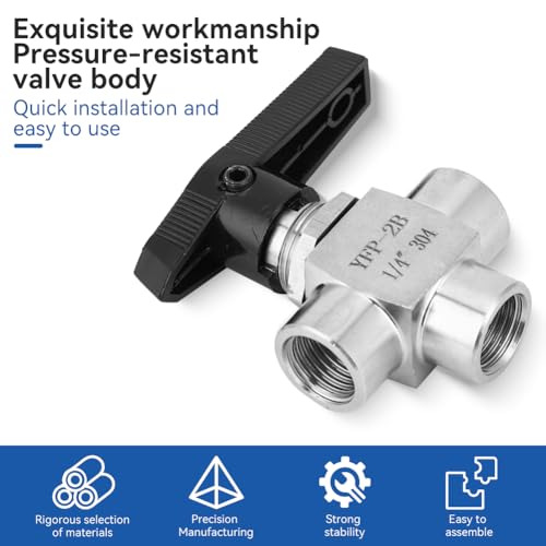 MATERIALE DI QUALITÀ - Materiale in acciaio inox 304, elevata durezza, buona stabilità, prestazioni di connessione stabili, buona tenuta, massima stabilità e durata anche a temperature molto elevate.Filettatura di precisione, nessun filo abrasivo, buona tenuta d'aria e sigillatura. La maniglia a leva montata in alto serve per chiudere e aprire la valvola a sfera, facile da usare.
