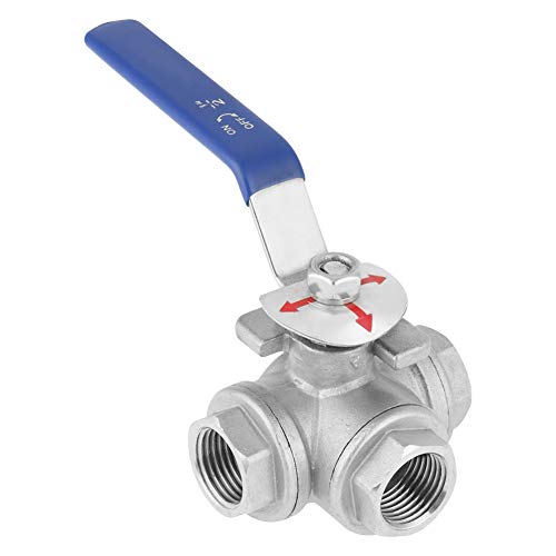 Valvola a Sfera a Tre Vie in Acciaio Inox, Filetto Femmina DN15 / 1/2 Pollice della Valvola a Sfera del Tubo con Maniglia di Bloccaggio per Acqua, Petrolio e Gas