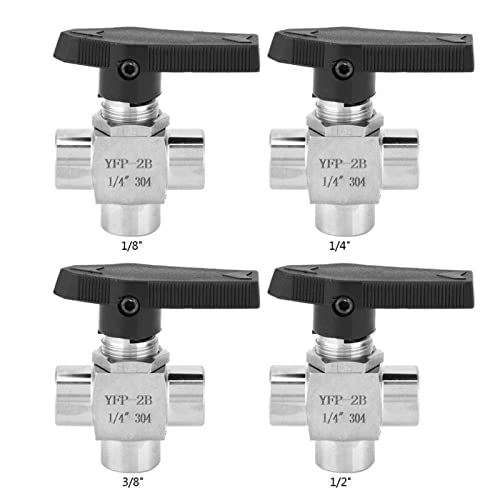 Valvola a Sfera, Valvola a Sfera a 3 Vie Filettatura Femmina BSPP Valvola di Intercettazione in Acciaio Inox 304 per il Controllo del Flusso del Tubo dell'Acqua(BSPP3/8")