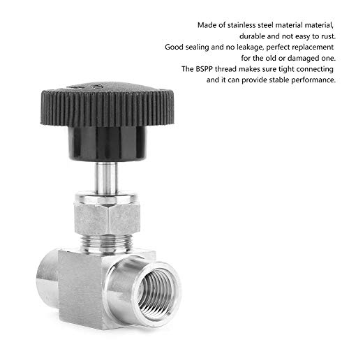 Valvola a spillo diritta in acciaio inossidabile Valvola di intercettazione filettatura femmina BSPP per trasmissione gasolio acqua(Black Handle 1/4in)