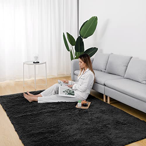 Vamcheer Tappeto Moderni Soggiorno 120x180 - Tappeti Camera da Letto Antiscivolo, Scendiletto,Carpet Soffice Pelo Lungo Morbido,Adatto per la Decorazione Domestica,Tappeti natalizi,Nero