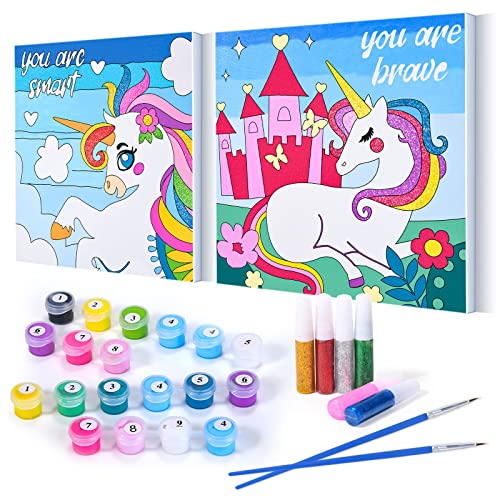 Vamei Dipingere con i Numeri Bambini Unicorno 4 5 6 7 8 9 10 Anni Unicorno Bambina Regalo 2pcs DIY Unicorno Pittura a Olio Lavoretti Creativi per Bambini Paint by Numbers Kit Unicorno Giocattolo