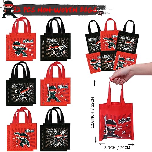 Vamei Gadget Ninja Compleanno Bambini Kit Festa Ninja Bambino con Braccialetti Ninja Borse Non Tessute per Feste di Ninja Portachiavi per Tatuaggi Regalo per Ragazzi Festa Compleanno