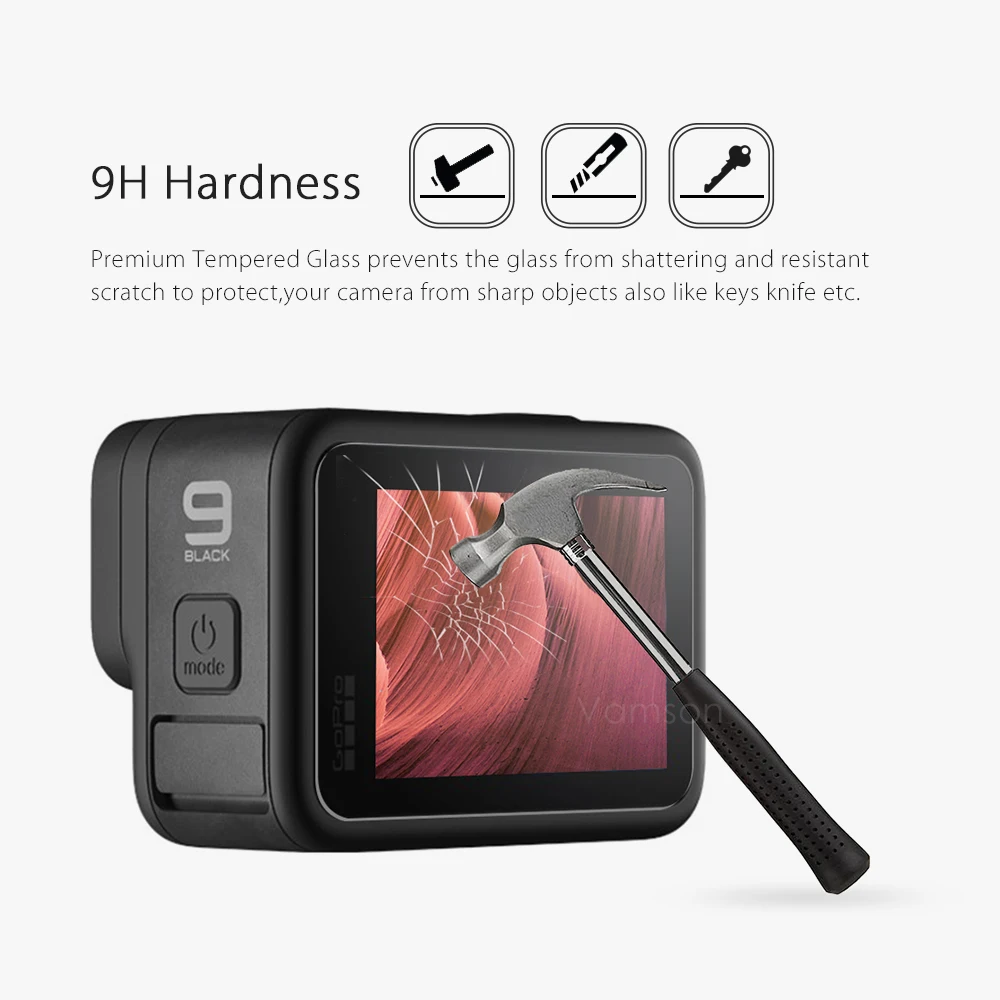 Vamson for Gopro Hero 9 Black Tempered Glass Screen Protector LCD Screen Protective Film for Go Pro 9 Camera Accessories