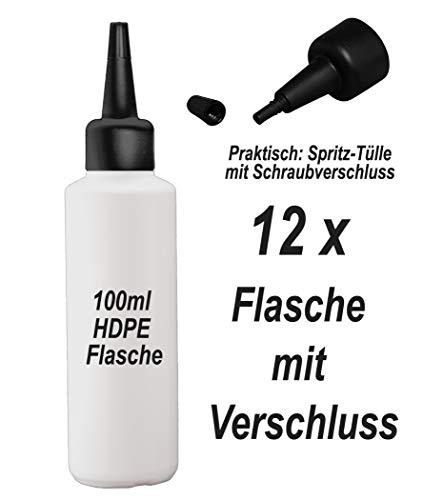 VanAnden, set da 12 bottiglie HD-PE da 100 ml, con beccuccio per versare, in nero, in plastica, con tappo di supporto