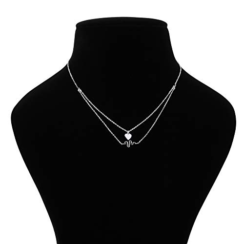 Vanbelle argento sterling jewelry "cuore " e "heartbeat " muti-strato girocollo collana con rhodium per donne e ragazze