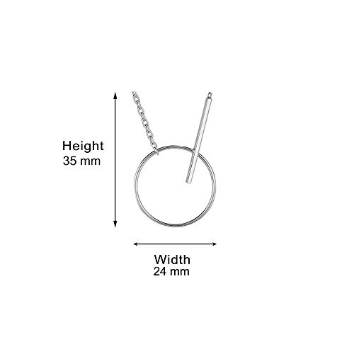 Vanbelle Argento sterling Placcato in rodio con timbro 925 - Collana con ciondolo a cerchio e barra - Elegante collana artigianale da donna - Lunghezza 16" + Prolunga da 2"