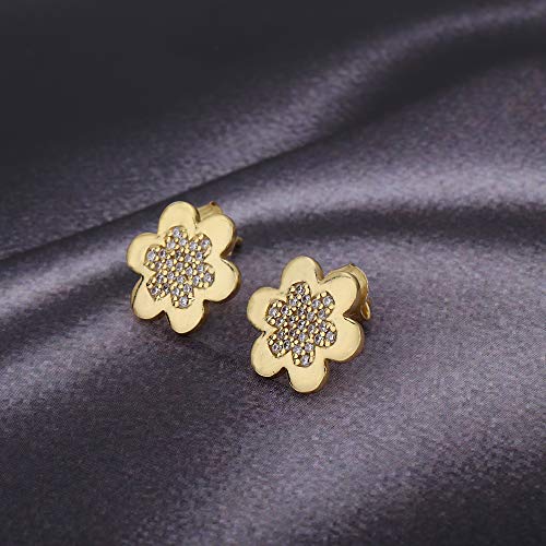 Vanbelle fiore argento sterling jewelry orecchini con cubic ziconia pietre e oro giallo flash placcato per donne e ragazze