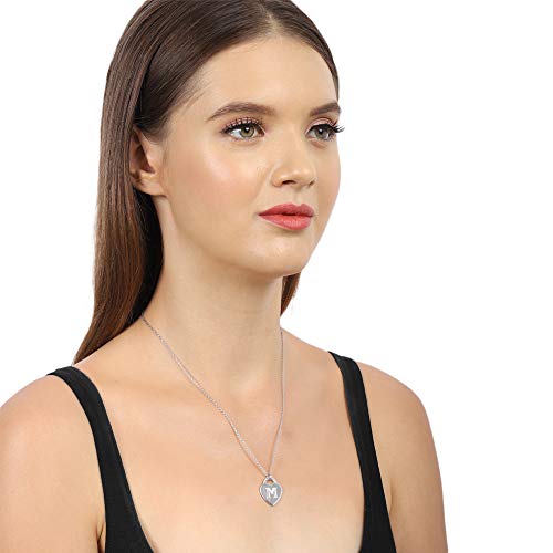 Vanbelle rodio placcato argento 925 lettera 'm' collana cuore inciso per donne e ragazze