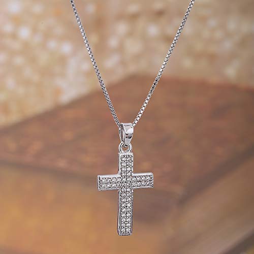 Vanbelle stering gioielli fissata argento ciondolo croce-collana con cubic zirconia pietre e rodio placcato per donne e ragazze