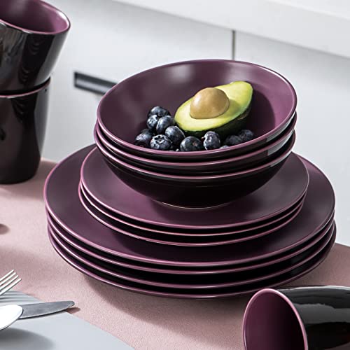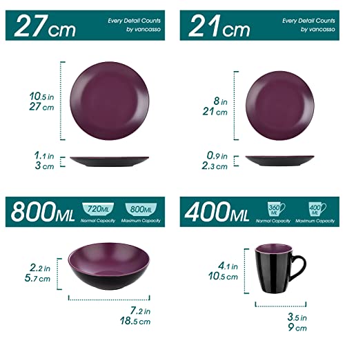 Vancasso Bacche Servizio Piatti Set di Piatti in Porcellana 32 pz Dipinto a Mano Servizio da Tavola in Ceramica con 8 Piatti Piani 8 Piatti da Dolce 8 Tazze 8 Ciotole per 8 Persone Colore Viola