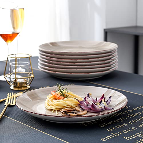 BELLA VITA: Le linee dipinte a mano sono distribuito a forma dell'anello annuale e i bordi sono marroni smaltati, combina forme rotonde classiche con un look vintage, rende la vostra tavola è così bella e elegante.