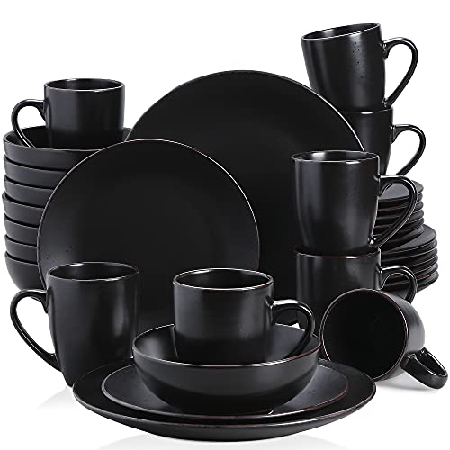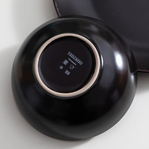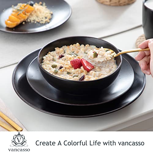 Vancasso MODA Servizio da tavola, set combinato da 32 pezzi in porcellana con piatto piano, piatto da dessert, ciotola di cereali e tazza, servizio da tavola nero, servizio per 8