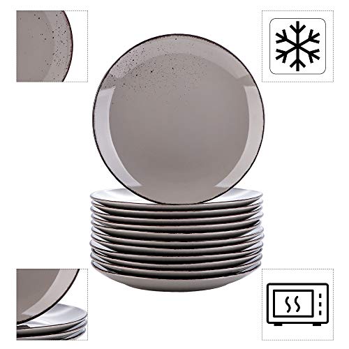 Vancasso Navia Jardin - Set di 12 piatti da tavola in gres porcellanato, effetto vintage, colore: grigio, 27 x 27 x 2,5 cm