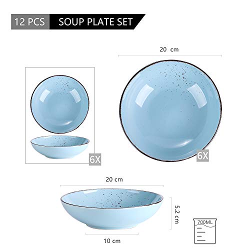 Vancasso NAVIA Servizio di Piatti Fondi 12 Pezzi in Grès Collezione Naturale ø 20 cm