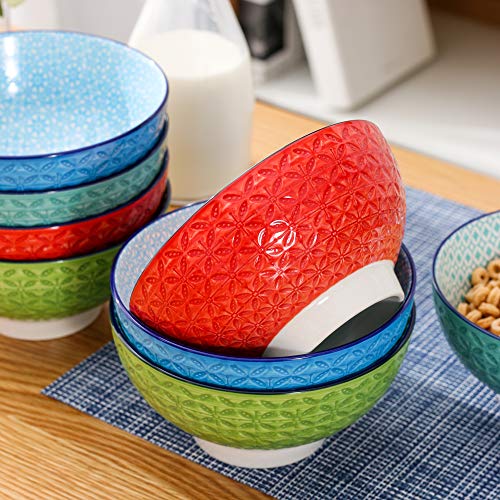 Pratico set di ciotole: una combinazione di 4 colori (rosso, blu, verde e ciano), di buon gusto, luminoso e unico. Ideale per famiglie di 8 persone, uso quotidiano di base. Diametro 15,3 cm, profondità 7,7 cm, 600 ml. Buone dimensioni per dessert, cereali, zuppe, riso, budino, insalata, farina d'avena. Le ciotole sono forti ma non troppo spesse, possono sopravvivere a più cicli della lavastoviglie, riscaldamento nel microonde e uso quotidiano.