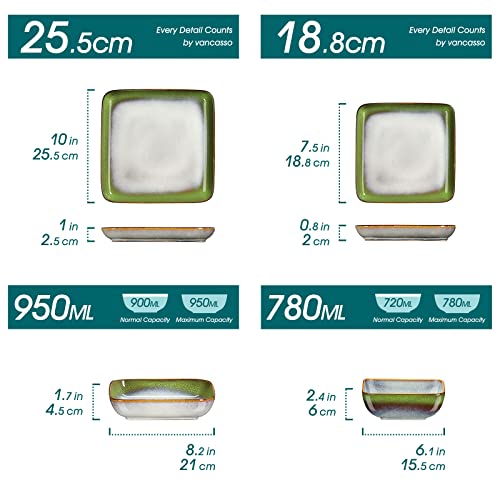 Vancasso Serie STERN, Set Piatti 16 Pezzi, Servizio Piatti in Stoneware, Piatti Rettangolari con 4 Piatti Piani, 4 Piatti Fondi e 4 Ciotole Cereali e 4 Piatti da dessert per 4 Persone, Stile vintage