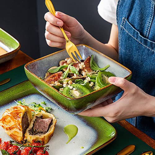 Design elegante e moderno: il design quadrato moderno, completato da un'elegante finitura verde, aggiunge un tocco di raffinatezza alla tua collezione di stoviglie esistente.