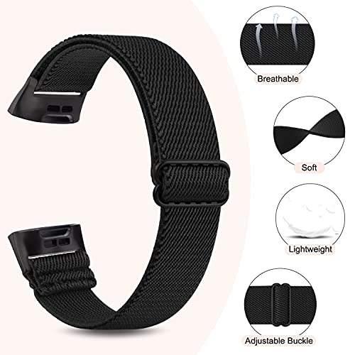 Vancle Cinturino elastico compatibile con Fitbit Charge 3, cinturino Fitbit Charge 4, cinturino di ricambio regolabile in nylon elastico per Fitbit Charge 3/Charge 4/Charge 3 SE (nero + Boemia)