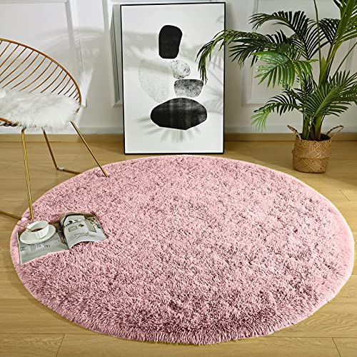 VanderHOME Tappeto Rotondo Soggiorno, Tappeto Lungo e Morbido Soffice Adatto per Tappeto per Soggiorno, Tappeti Rotondo Cameretta Moderni, Tappeto da soggiorno Lavabili (Rosa, 140x140 cm)