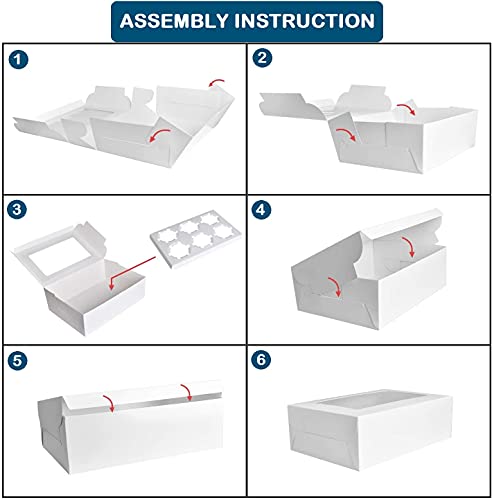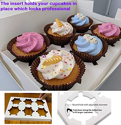 Design professionale: le scatole di cartone bianco da 24 x 16 x 7,5 cm possono contenere 6 cupcakes, vengono fornite con finestra trasparente per dare un aspetto professionale alla tua cottura. Le scatole da forno e gli inserti sono progettati per proteggere i cupcake da schiacciarsi l'uno nell'altro e garantire che i tuoi deliziosi dolcetti raggiungano la loro destinazione in modo sicuro.