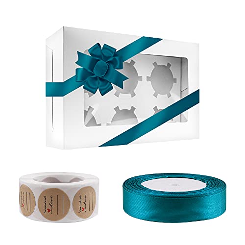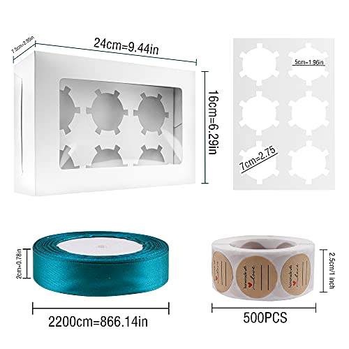 Set completo: la confezione include 10 scatole per cupcake, 10 inserti, rotolo di nastro blu da 22 m e 500 rotoli adesivi per decorazione ed etichettatura. Usa il rotolo di nastro per distinguerti con le tue eccellenti capacità di decorazione e metti un adesivo per sigillare la scatola con il tuo nome e la data di cottura.