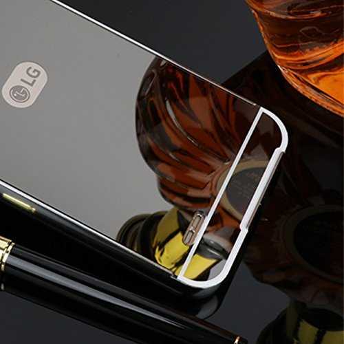 Vandot - Per LG K10 2017 Mirror Custodia Specchio Case Cover Antiurto Graffiare Bumper, Dura Metallo Sottile Transparente PC Copertura Posteriore Caso Della, Placcatura in alluminio Metallo di lusso Moda Specchio Riflessione Bling Antiurto Trucco Specchio -Nero